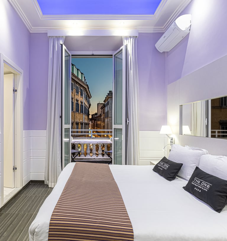 An elegant room offering enhanced comfort and beautiful city views, perfect for a stylish stay in the heart of Rome.